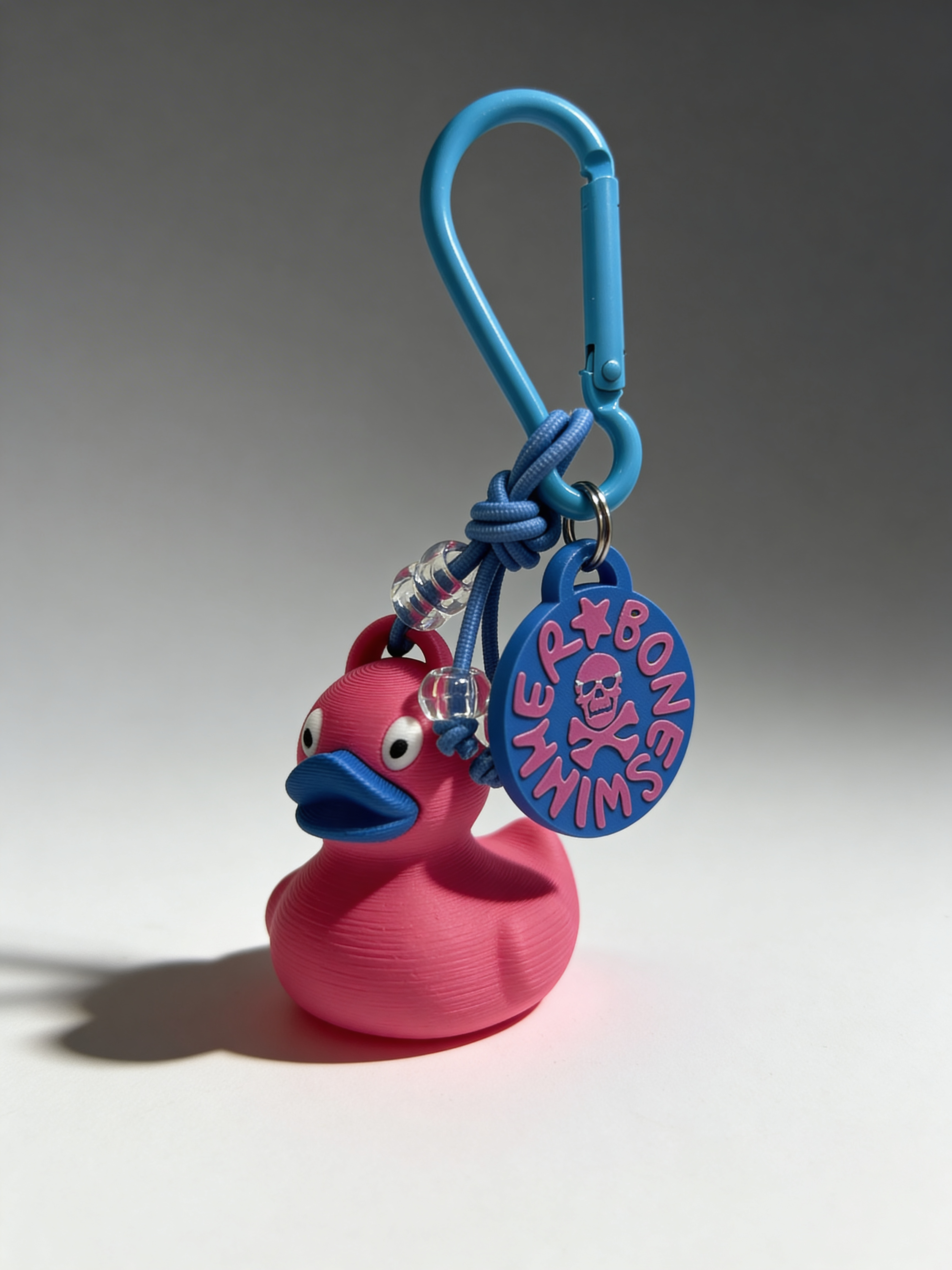 Zawieszka do kluczy Duck Psycho z odznaką — Fuksja / Błękitny